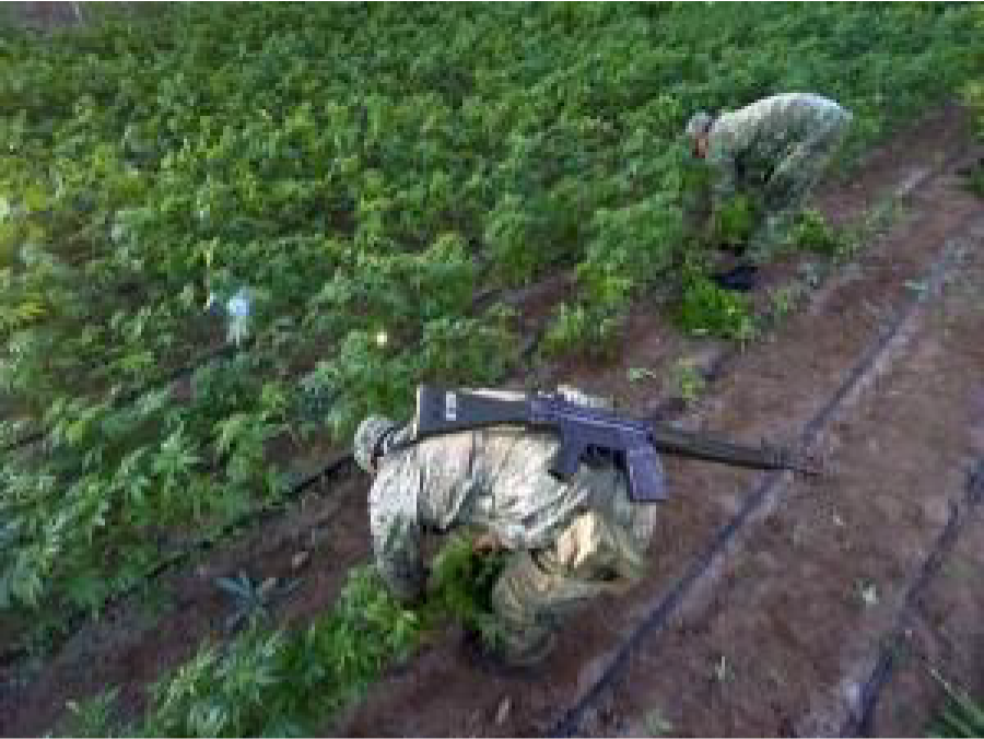 Marihuana en Chihuahua se ha confiscado 153 toneladas 484 kilos, y en Durango 92 toneladas 307 kilos y en Sinaloa: 187 toneladas 962 kilos.